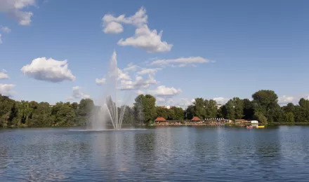 Strandbad Weißensee mit Fontäne im Bezirk Pankow