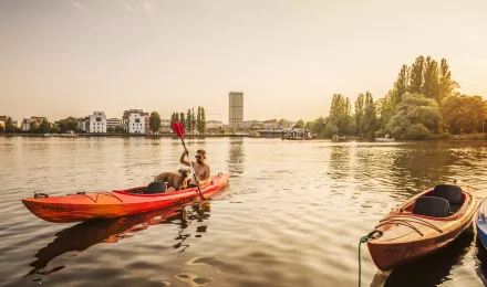 Lichtenberg, Rummelsburger See, Paul und Paula Ufer, Kayak Verleih Ahoi Ostkreuz
