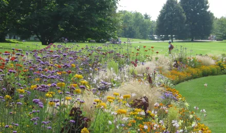 Tulpenmeere im Frühling, Rosenzauber im Sommer, Dahlienfeuer im Herbst: Der 90 Hektar große Britzer Garten in Berlins Süden bietet seit der Bundesgartenschau, die im Jahr 1985 in West–Berlin stattfand, zu jeder Jahreszeit große Gartenkunst.