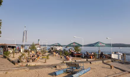 Bei gutem Wetter bietet die im Sommer offene Strandbar "Gestrandet" mit Liegestühlen am See Cocktails und Grillspeisen an. Adresse: Josef-Nawrocki-Straße, 12587 Berlin