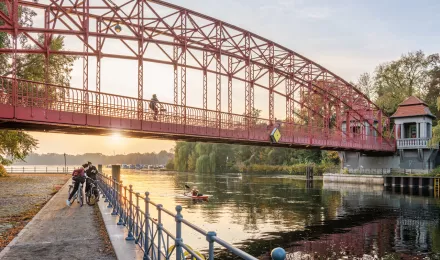 Die Tegeler Hafenbrücke im Berliner Ortsteil Tegel, im Volksmund „Sechserbrücke“ genannt, überspannt als Fußgängerbrücke die Einfahrt des Tegeler Hafens und die Mündung des Tegeler Fließes.