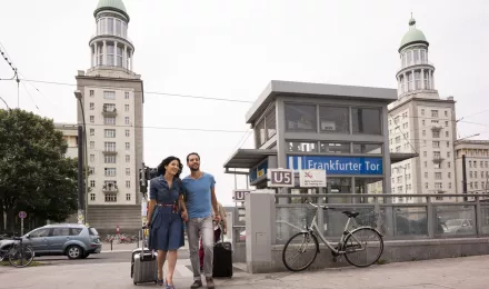 U-Bahnhof Frankfurter Tor, junges Paar, Anreise