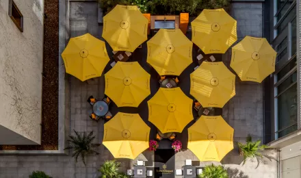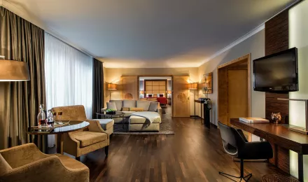 Luxushotel mit Gourmetrestaurant sowie Wellbeing-Bereich mit Fitnesslounge und Spa in der obersten Etage.