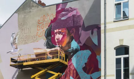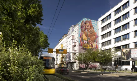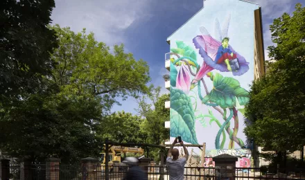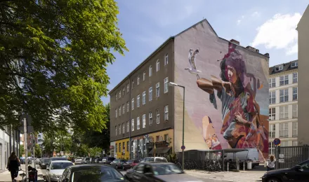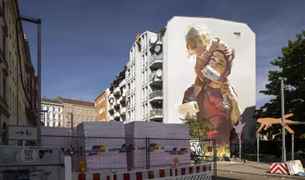 Beim «Berlin Mural Fest» entstehen über 80 neue Streetart-Kunstwerke in der ganzen Stadt. Eins der bemalten Häuser befindet sich in der Lehrter Straße 27.