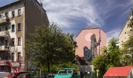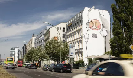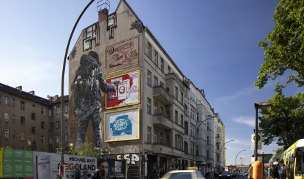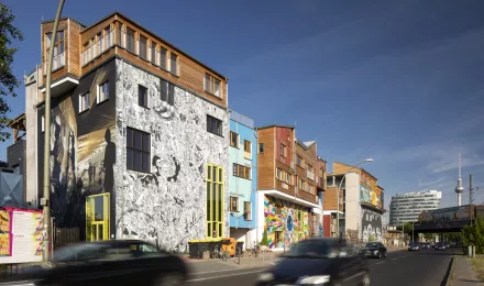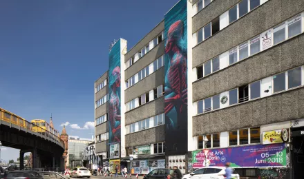 Beim «Berlin Mural Fest» entstanden über 80 neue Streetart-Kunstwerke in der ganzen Stadt. Eins der bemalten Häuser ist die Event-Location Holzmarkt 25.