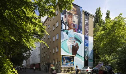 Beim «Berlin Mural Fest» entstanden über 80 neue Streetart-Kunstwerke in der ganzen Stadt. Dieses ist eins der bemalten Häuser in der Prinzessinnenstraße 16.