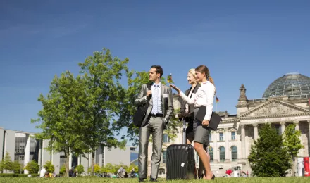• Geschäftsleute und Touristen mischen sich am Potsdamer Platz