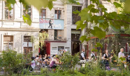 Das angesagte Abendlokal verbindet Hinterhofcharme mit abwechslungsreicher vegetarischer Gastronomie.