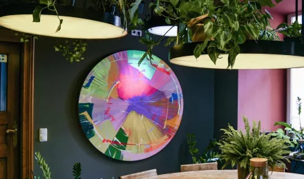Modernes, stilvolles Spitzenrestaurant mit umwerfendem Stadtblick auf den Potsdamer Platz vom Sternekoch Björn Swanson eröffnet. Im achten Stock mit grandiosem Ausblick über die Hauptstadt trifft mit GOLVET × THE HAUS Spitzengastronomie auf „Urban Art“ mitten im pulsierenden kreativen Zentrum Berlins. Acht Künstlerkollektive aus THE HAUS haben eine eigene Fläche im GOLVET zur Verfügung gestellt und absoluten Freiraum für ihre Arbeit bekommen. Das Ergebnis ist ein außergewöhnliches Zusammenspiel zwischen dem eleganten, geradlinigen Interieur des GOLVET und den ganz unterschiedlichen Stilen der Street-Art-Künstler, die meist nur im urbanen Raum zu finden sind.