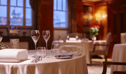 kombinierbaren Menüs mit vier bis sechs Gängen. Die Weinliste wartet mit rund 200 verschiedenen Weinen auf.