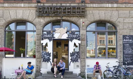 Cafe und Bar Baustelle im Hotel Michelberger im Stadtteil Friedrichshain