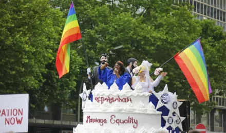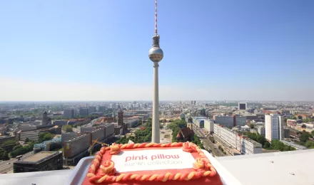 Regenbogenkuchen, Backaktion der visitBerlin-Partnerhotels e.V. am Internationalen Tag gegen Homophobie, pink-pillow-Hotels