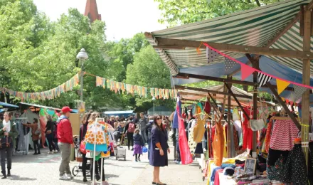 Ein buntbezaubernder Lifestylemarkt und Zusammenkommen für Groß und Klein - gesäumt von den üppig grünen Bäumen des lauschigen Kranoldplatzes in Upper Neukölln. Ein Ort zum Stöbern und Entdecken von einzigartigen Vintageschätzen und liebevoll kreierten Schönheiten für die Garderobe.