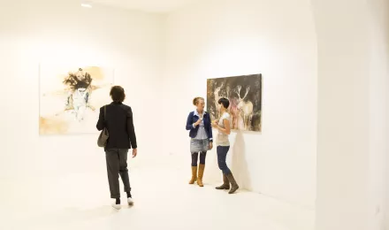 Besucher auf einer Vernissage der Janinebeangallery in der Torstraße