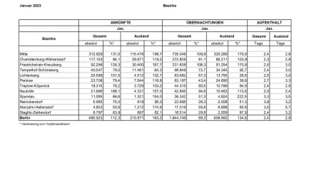 Hier stellen wir Ihnen monatlich die aktuelle Tourismusstatistik der Berliner Bezirke zur Verfügung. Mehr Infos zu visitBerlins touristischem Bezirksmarketing finden Sie hier.