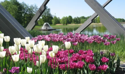 Tulpenmeere im Frühling, Rosenzauber im Sommer, Dahlienfeuer im Herbst: Der 90 Hektar große Britzer Garten in Berlins Süden bietet seit der Bundesgartenschau, die im Jahr 1985 in West–Berlin stattfand, zu jeder Jahreszeit große Gartenkunst.