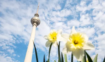 Alexanderplatz, Mitte, Fernsehturm, Frühling