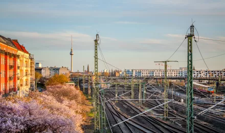 Fernsehturm am Alexanderplatz hinter Kirschblüten