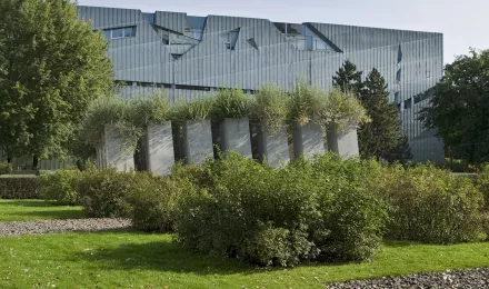 Jüdisches Museum in der Lindenstraße in Berlin - Kreuzberg, der Museumsneubau des Architekten Daniel Libeskind. Stelen im 'Garten des Exils'