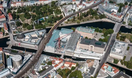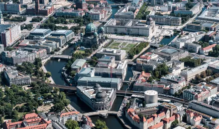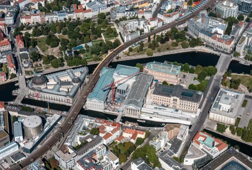 Luftaufnahme der Museumsinsel im Sommer 2021