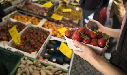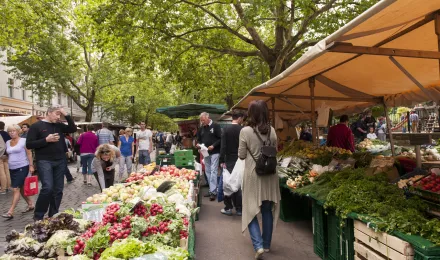 Wochen und Ökomarkt auf dem Kollwitzplatz in Prenzlauer Berg