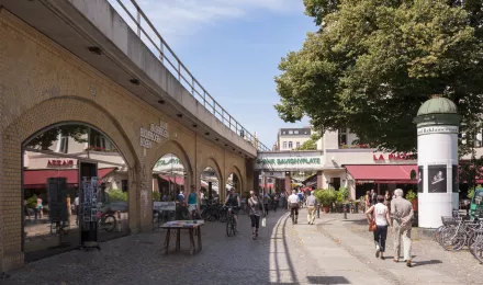 Buchhandlung Bücherbogen und Restaurant La Piazza am S-Bahnhof Savignyplatz