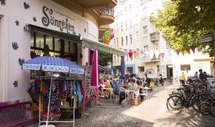 Kinderbekleidung, Lausitzer Platz, Wrangelkiez, im Hintergrund Eissalon tanne B