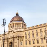 Eingebettet ist das Humboldt Forum in die geschichtliche Stadtlandschaft von Museumsinsel, Berliner Dom, Kronprinzenpalais und Nikolaiviertel. Die Architektur: eine kontrastreiche Verbindung hochmoderner Bauelemente mit den rekonstruierten Fassaden des ehemaligen Berliner Barockschlosses. Über sechs Portale zugänglich, wird das Humboldt Forum nach dem Ende der Corona-Restriktionen mit den neuen Plätzen Schlüterhof und Passage allen Besucher*innen rund um die Uhr offenstehen.