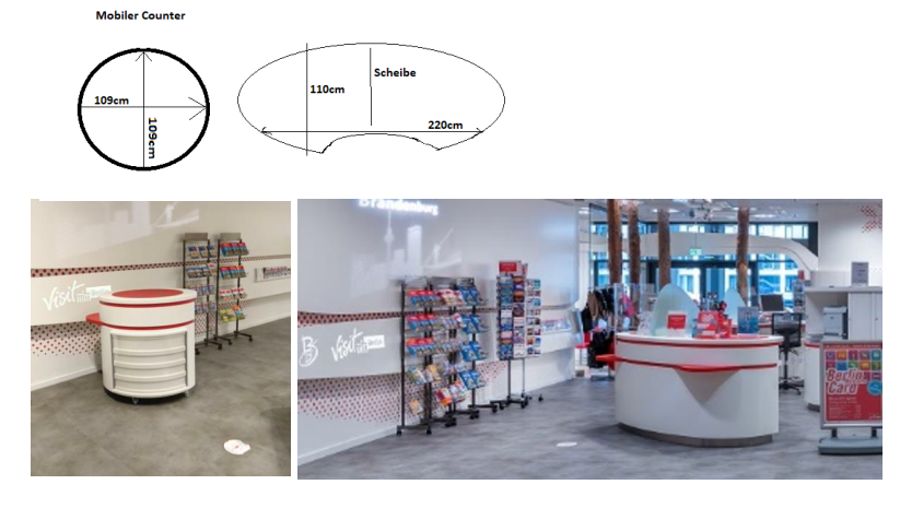 Counter in den Berlin Tourist Infos am Hauptbahnhof & Flughafen BER